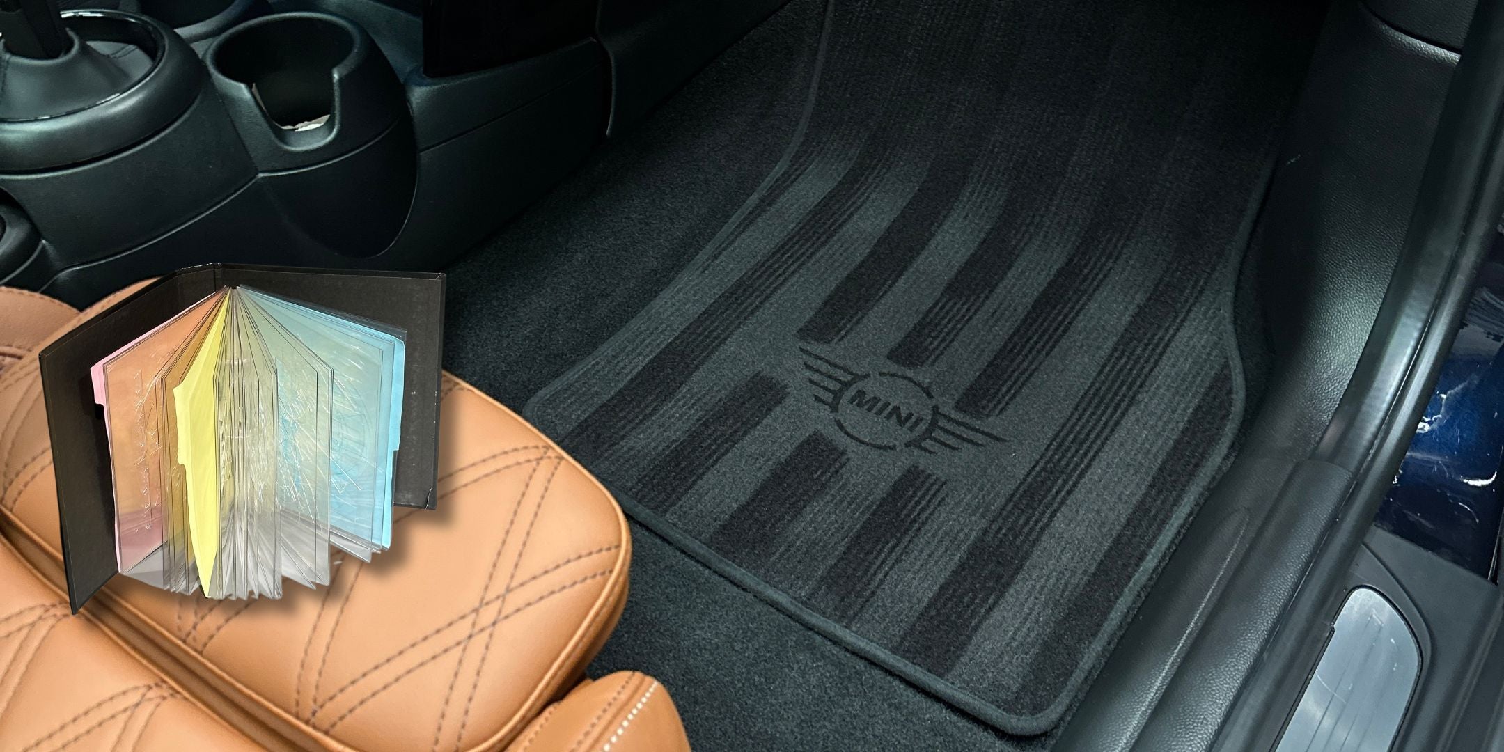 Upgrade your folder kit with your personal design and get x3 stencils that will replicate your bussines logo on any car floor mats.